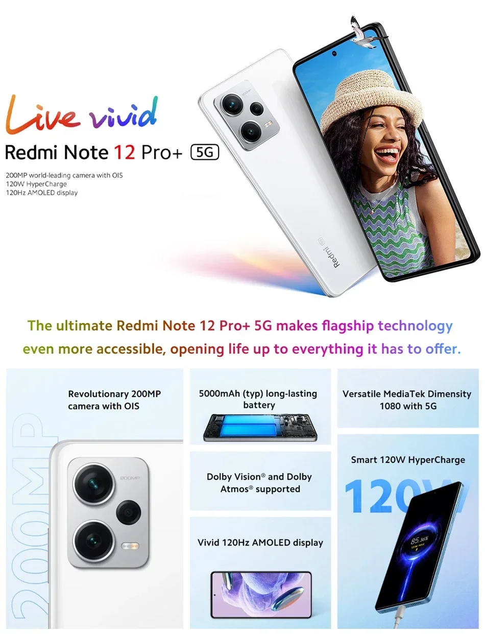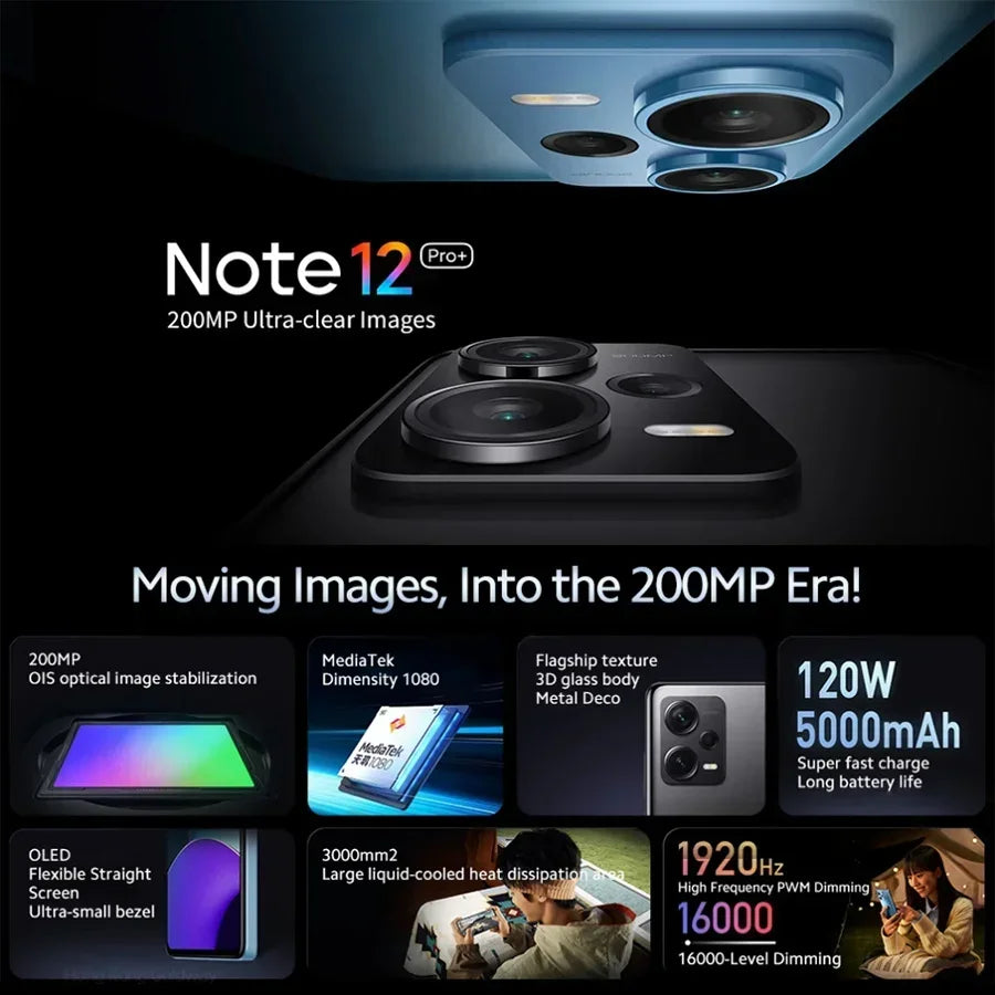 Xiaomi Redmi Note 12 Pro+ 5G – 8GB/12GB RAM + 256GB, Câmera 200MP